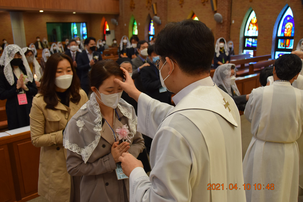 2021년 4월 10일 부활 팔일축제 토요일 오전 10시 미사중에 예비신자 세례식이 있었습니다.