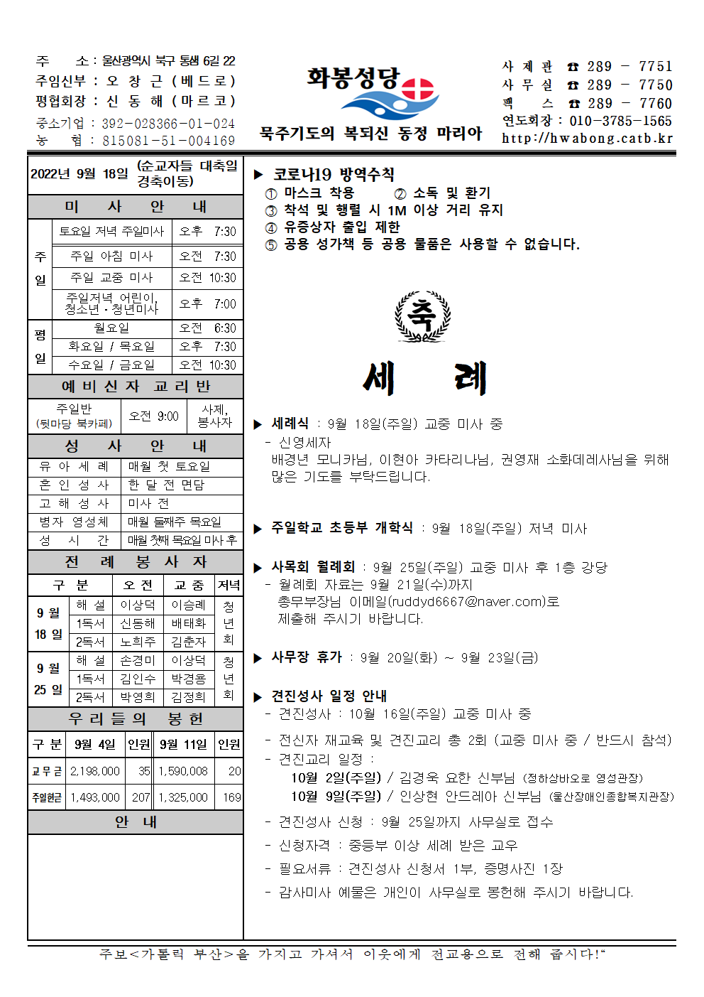 화봉성당 20220918 주보