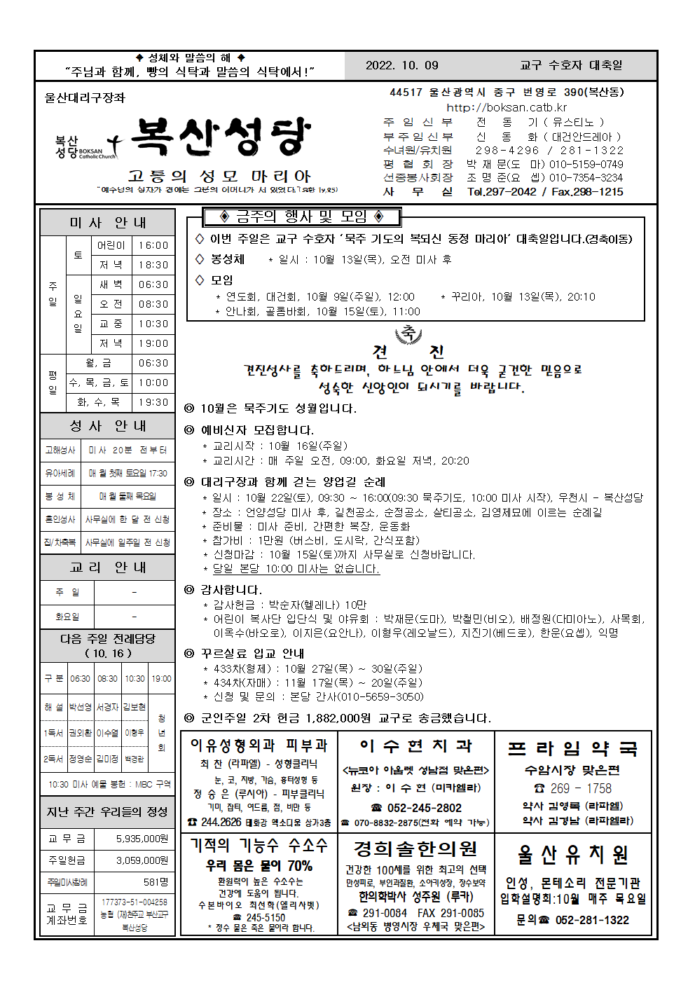 2022. 10. 09 - 교구 수호자 대축일