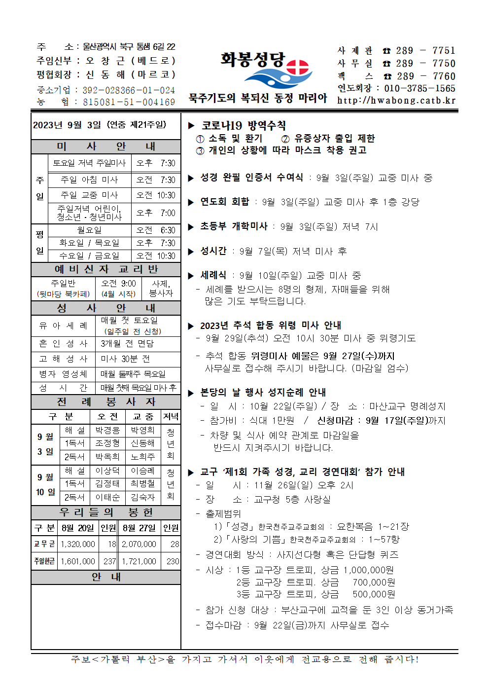 화봉성당 20230910 주보