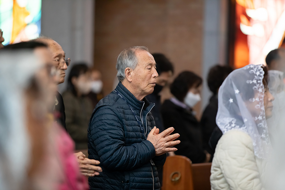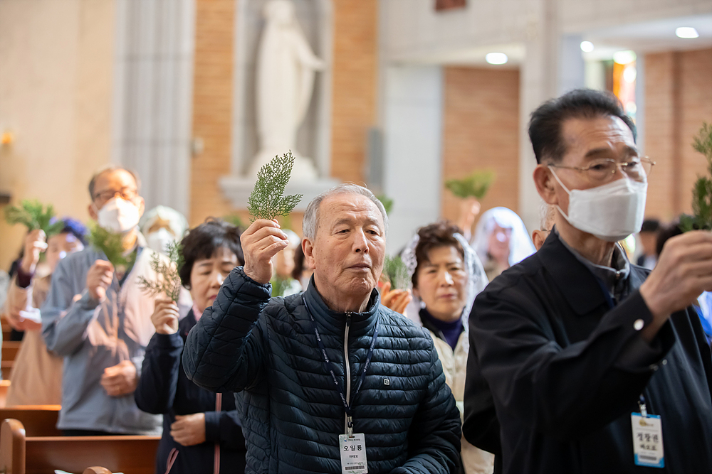 이날 미사는 2층 예수 성심상 앞에서 성지(聖枝) 축복과 행렬을 거행하며 예수님의 예루살렘 입성을 영광스럽게 기념하는 한편, ‘주님의 수난기’를 읽고 그분의 수난을 깊이 되새겼습니다.