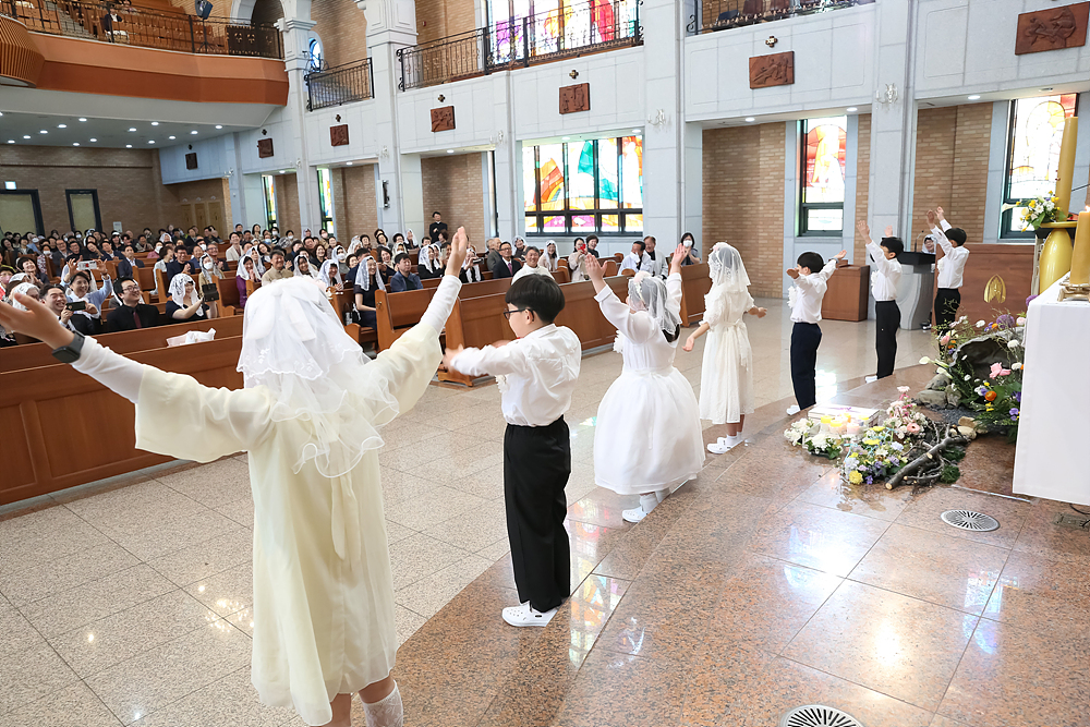 2025년 4월27일(주일) 교중미사 중, 대성전에서 복산성당 첫 영성체 행사를 가졌습니다.