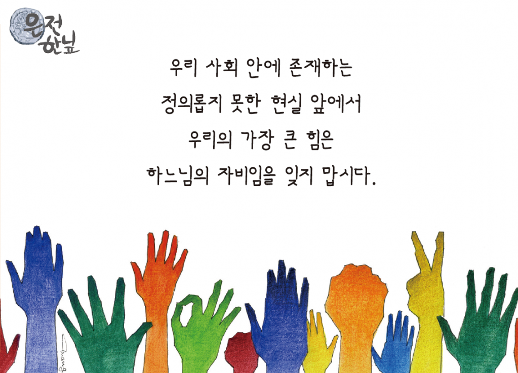 우리 사회 안에 존재하는 정의롭지 못한 현실 앞에서 우리의 가장 큰 힘은 하느님의 자비임을 잊지 맙시다.